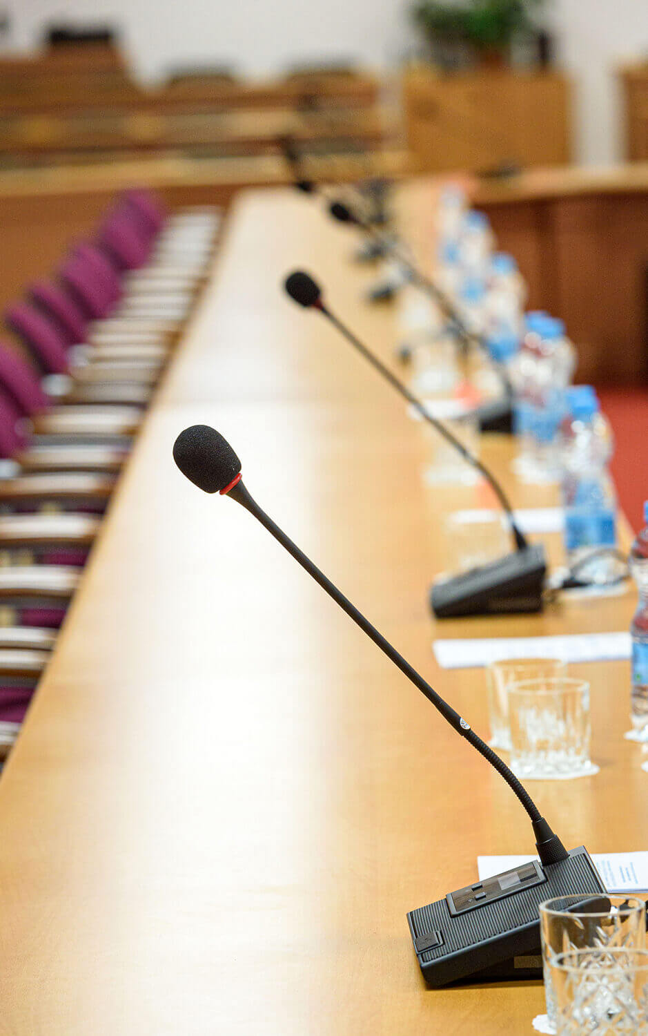 Для участников заседаний мы предусмотрели два пульта председателя и двадцать пультов делегатов Gestton EG-6620C/D .