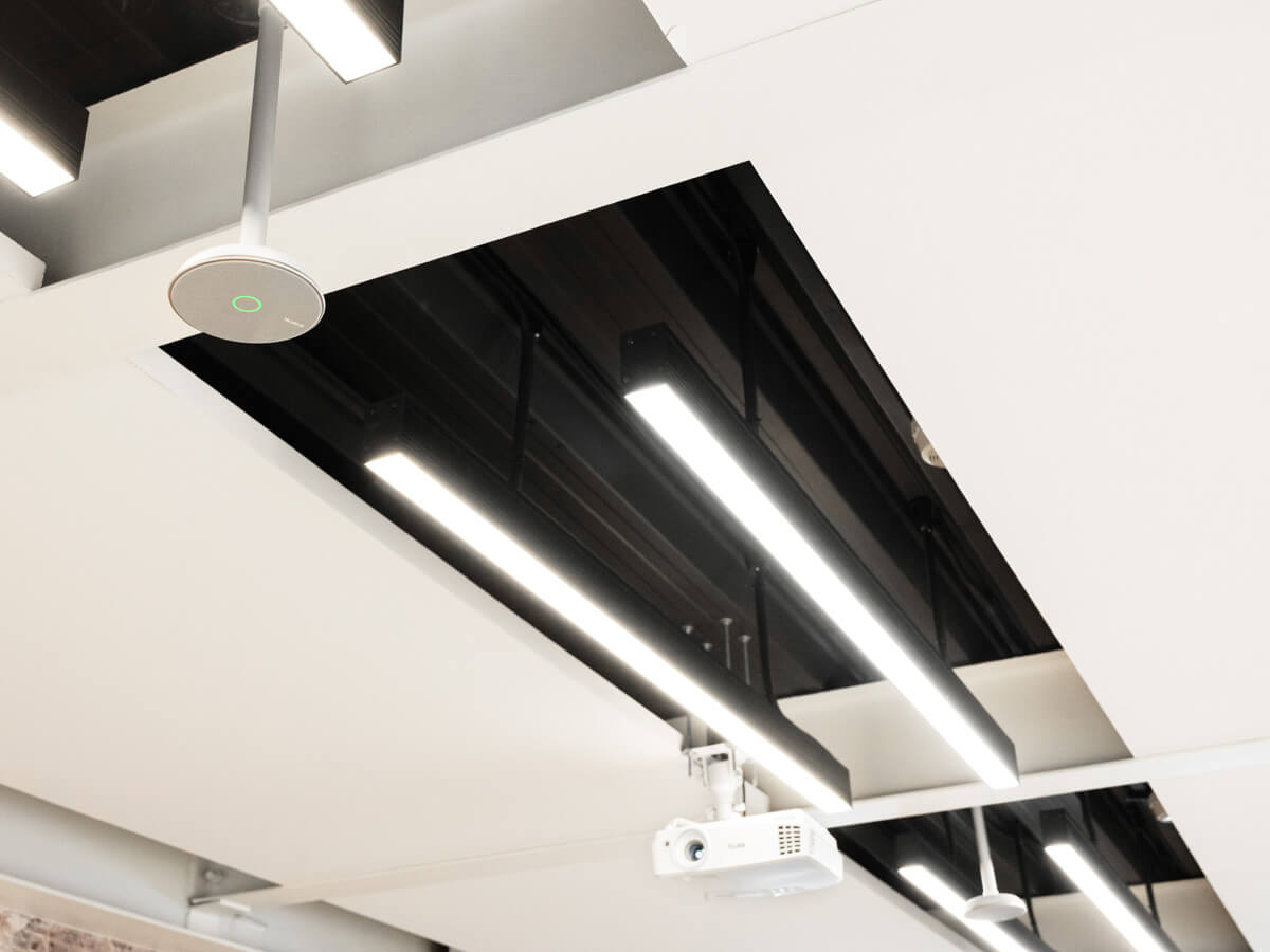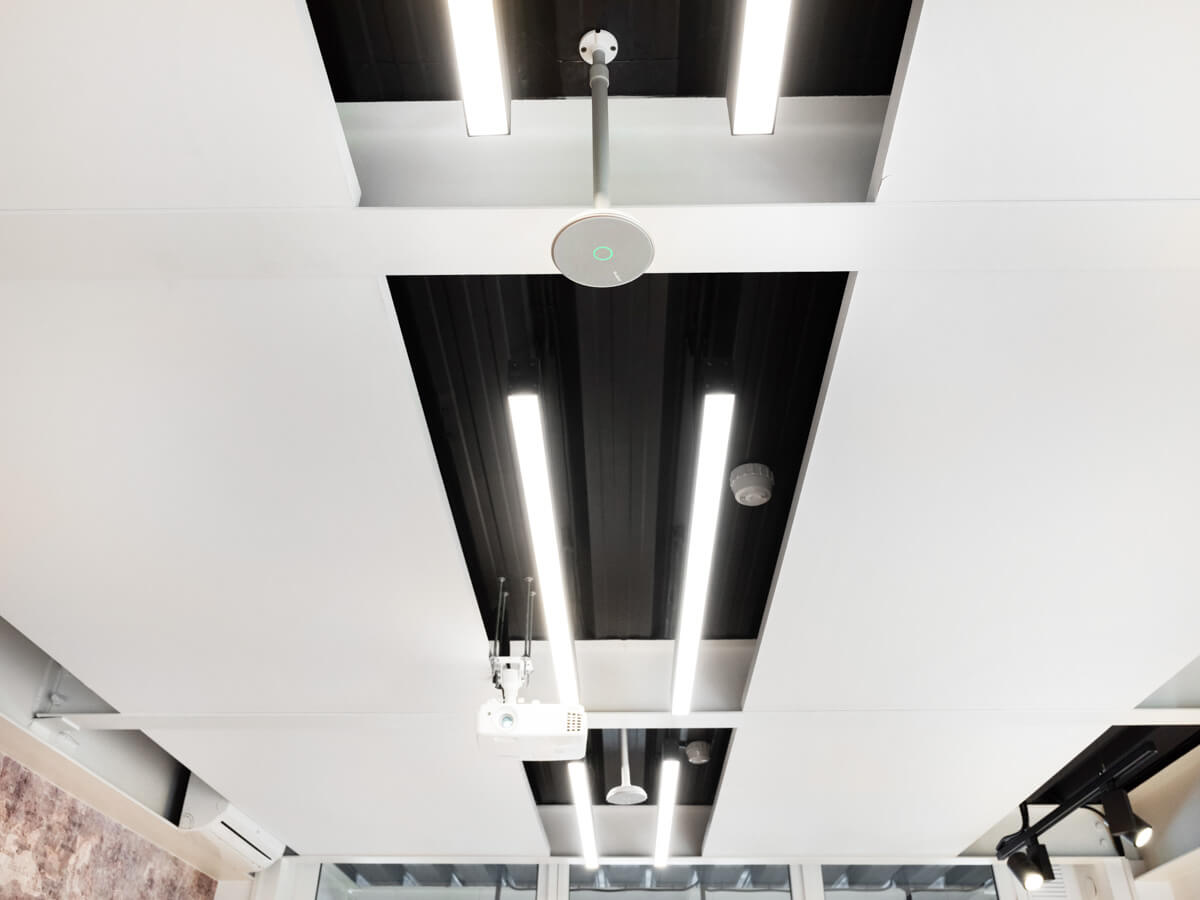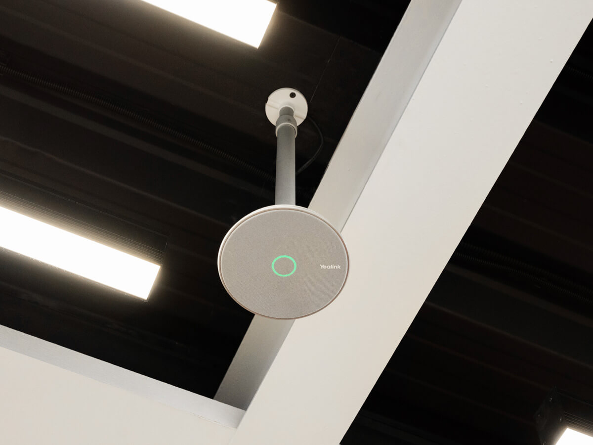 - Потолочные массивы микрофонов оснащены технологией Acoustic Shield с автоматическим шумоподавлением для комфортной и реалистичной передачи голоса.