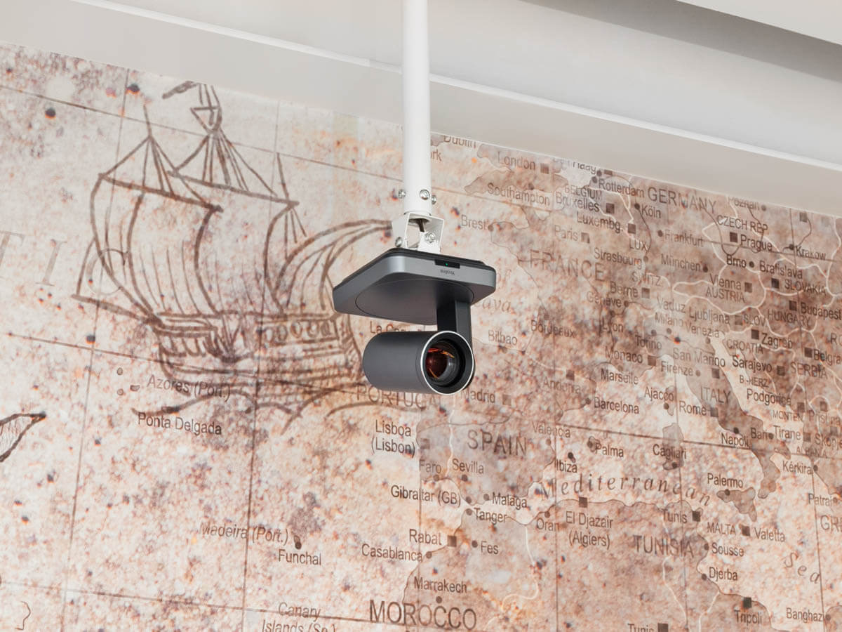- Модель UVC84 – для отслеживания зала. Это управляемая 4K-камера с 12-кратным оптическим и 3-кратным цифровым зумом.