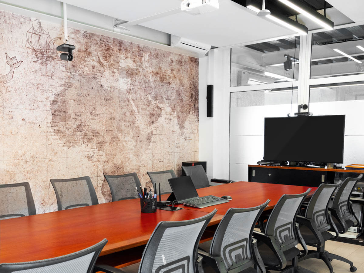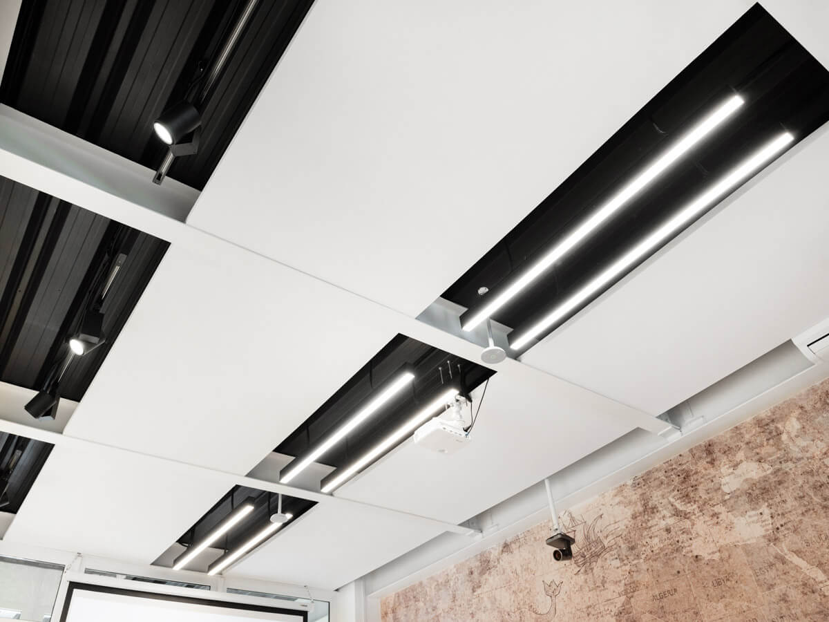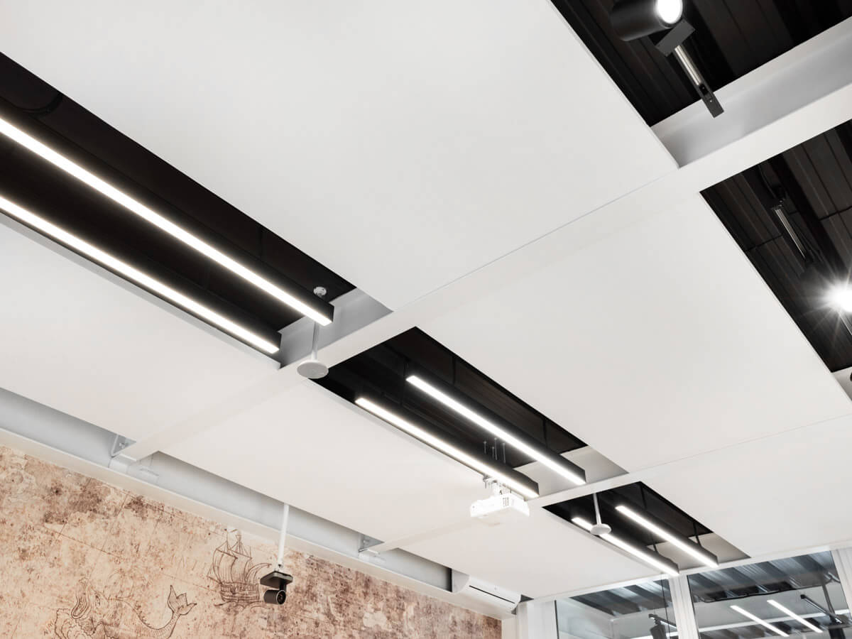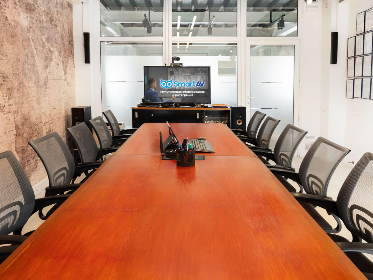 Со всех сторон переговорная окружена стеклянными поверхностями. Они резонировали, добавляли шум. Чтобы нейтрализовать эхо, мы рекомендовали выполнить акустическую отделку потолка специальными панелями “Акуфон Пролайн Соло”. Проблема эха и многократного отражения звука была решена. Теперь оборудование выполняет свою работу на все 100%. А сотрудникам «Профиль-Евро» стало намного комфортнее проводить совещания и ВКС в переговорной.