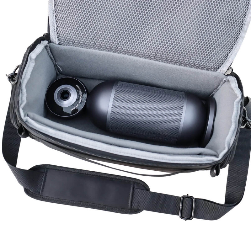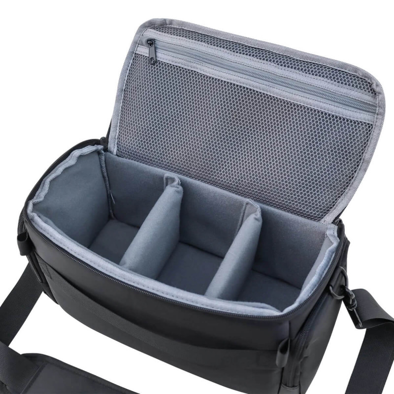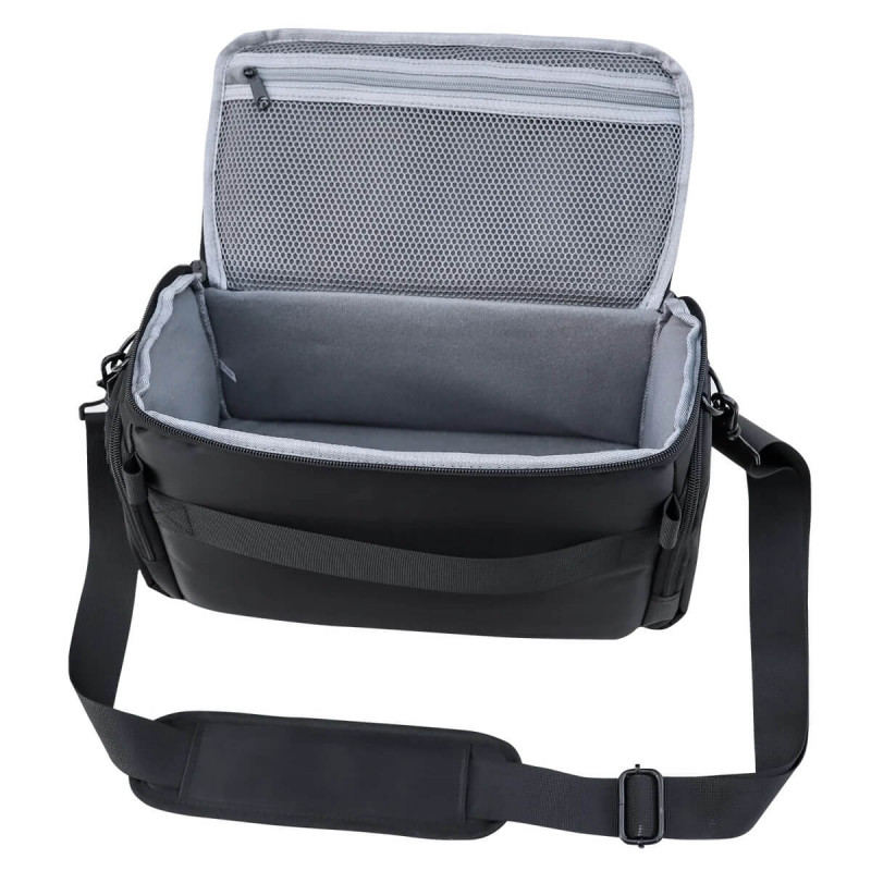 Удобное решение для хранения и транспортировки фототехники. Сумка оснащена карманами с трехсторонней молнией, организованными внутренними отсеками и съемным плечевым ремнем.