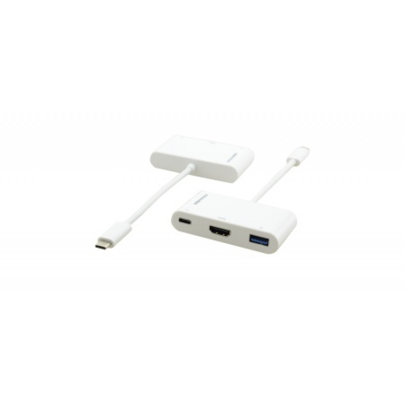 Переходник USB 3.1 тип C вилка на HDMI розетку, USB 3.0 розетку и розетку USB 3.1 Type-C для зарядки мобильных устройств.