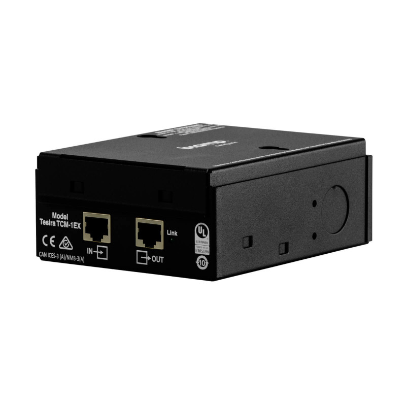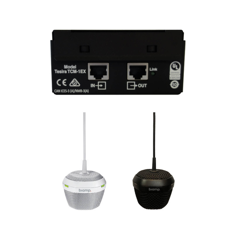 Модель Biamp TCM-1EX — это вспомогательный потолочный микрофон с поддержкой AVB, предназначенный для использования в системах Tesira. Каждый микрофонный блок, состоящий из запотолочного коммутационного бокса и подвесного микрофона, использует технологию направленного звука с тремя 120-градусными зонами, что позволяет обеспечивать полный охват помещения для совещаний на 360 градусов. Микрофон TCM-1EX автоматически отслеживает и с помощью интеллектуальных алгоритмов микширует речь всех сидящих за столом, позволяя собеседникам, находящимся на удалении друг от друга, слышать всю беседу естественным образом.