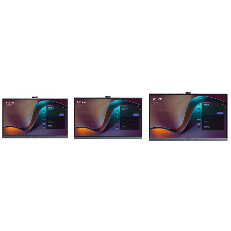 Сенсорный дисплей 86 дюймов с разрешением 4K, встроенной 4K-камерой с углом обзора 120° и 16-микрофонным массивом. Работает на базе Android 10 с приложением Microsoft Teams, поддерживает Wi-Fi 6, Bluetooth 5.0 и подключение дополнительной PTZ-камеры.