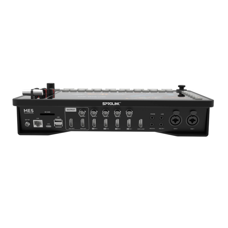 Sprolink NeoLIVE ME5 - видеомикшер потокового видео в формате 4K NDI, ME5 от SPROLINK, оснащённый сенсорным экраном с диагональю 10,1 дюйма, встроенным профессиональным двухканальным XLR-аудиоинтерфейсом, поддержкой потоковой передачи, записи и функций PTZ-управления.