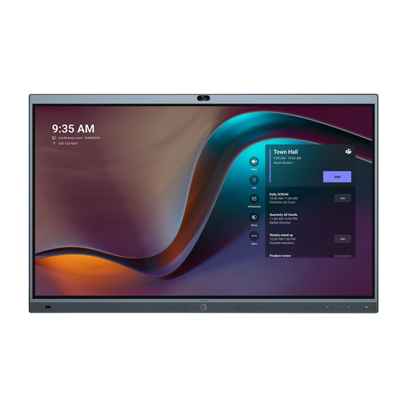 Видеотерминал, совмещенный с учебной доской, для совместной удаленной работы в среде Microsoft Teams. или, в режиме BYOD, с другими коммуникационными приложениями пользователя. Удобная интегрированная конструкция на базе 65-дюймового сенсорного экрана на стойке с встроенными 4k-видеокамерой, 16-микрофонным массивом, аудиосистемой из 6 динамиков и ОС Android, не требует мини-ПК. Подходит для помещений разных размеров, дополнительно расширяется управляемой видеокамерой, беспроводными микрофонами CPW90 и второй сенсорной панелью управления. Поставляется с настенным кронштейном, напольная стойка доступна опционально. Поддерживается системой удаленного управления, диагностики и техподдержки YDMP.