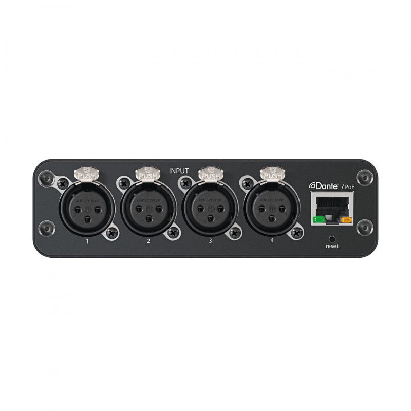 Интеграция до четырех аналоговых линейных/микрофонных сигналов в сеть Dante для упрощенной маршрутизации аудио