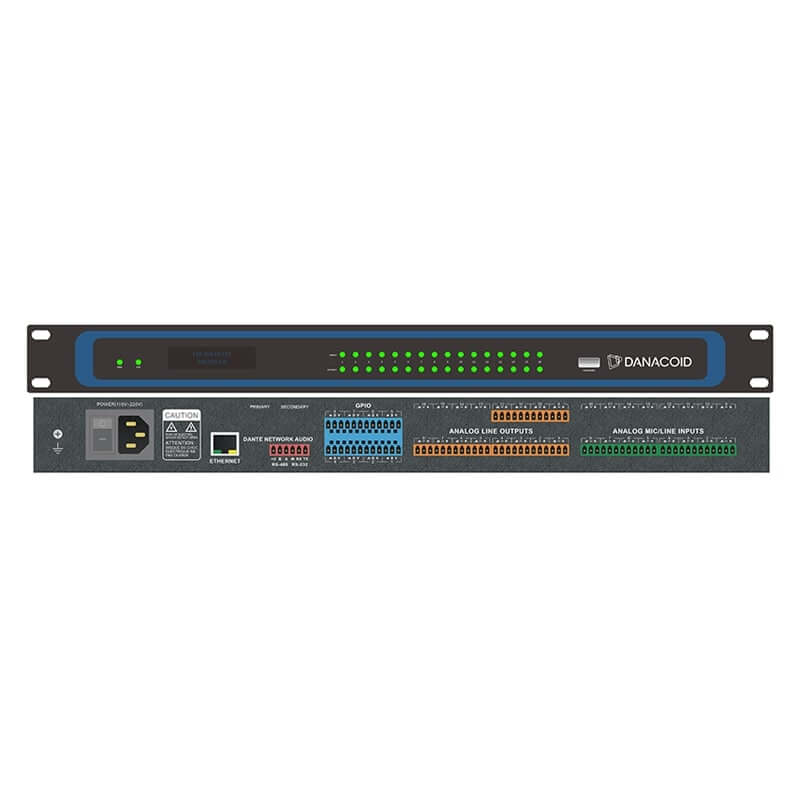 Поддержка 8 балансных микрофонных/линейных входов, 12 балансных линейных выходов. Поддержка AEC, ANS, AutoMixer, AFC, фантомного питания и управления через RS232, RS485, UDP.