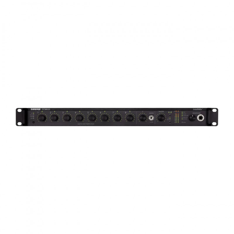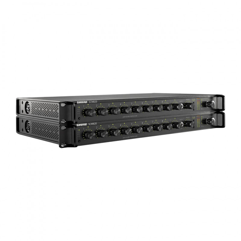 Shure SCM820 - восьмиканальный цифровой автоматический микшер, который предназначен для речевых приложений, включая усиление звука, вещание и аудиозапись. Технология Intellimix значительно улучшает качество звука в любых приложениях, где требуется несколько микрофонов.