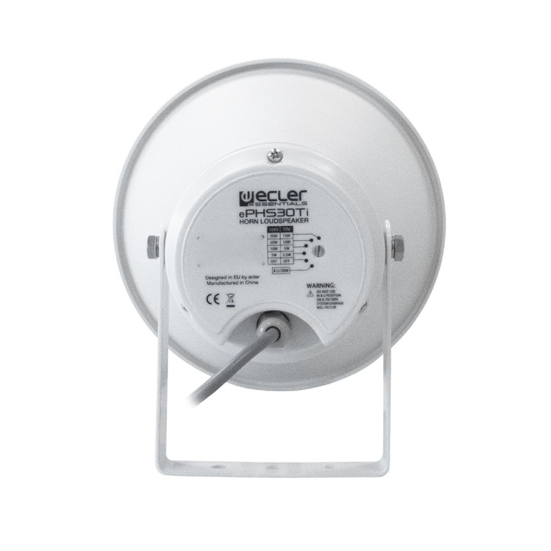ePHS30Ti – профессиональная акустическая система для использования вне помещений. Защищена от влаги и пыли (IP66). Оборудована 6,5'' широкополосным динамиком и линейным трансформатором 100 В с отводами мощности на 30, 20, 10 и 5 Вт.